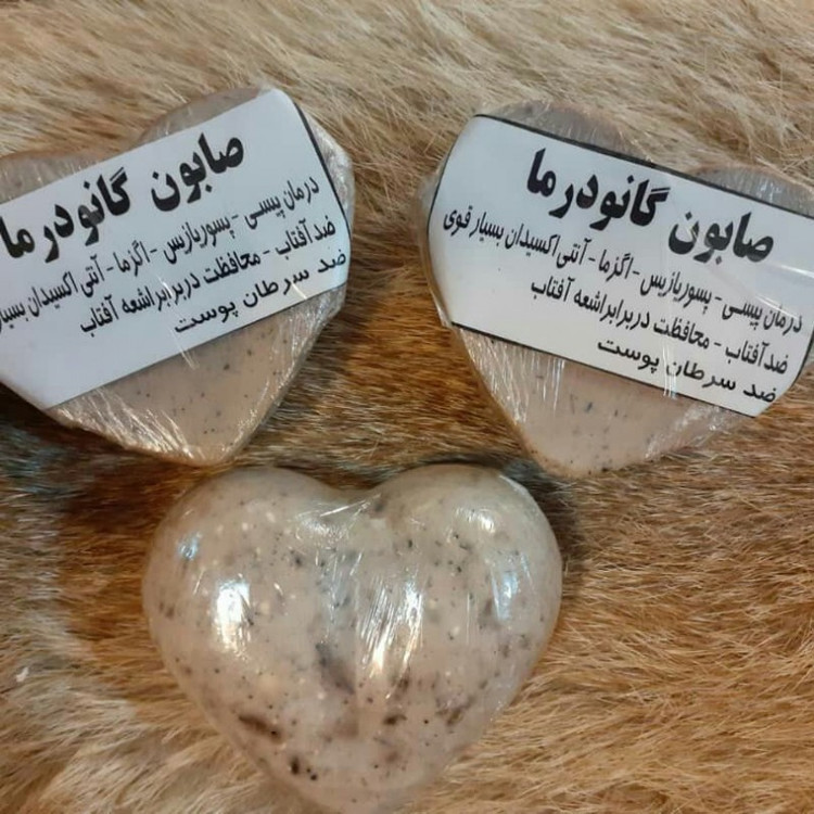 صابون گانودرما محصولات بوعلی درمان مشکلات پوستی اگزما پیسی پسویازیس ضد سرطان پوست محافظ پوست در برابر اشعه افتاب خصوصا در افرادی ک از هیچ نوع کرمی جهت کمک به ضد افتاب استفاده نمیکنند